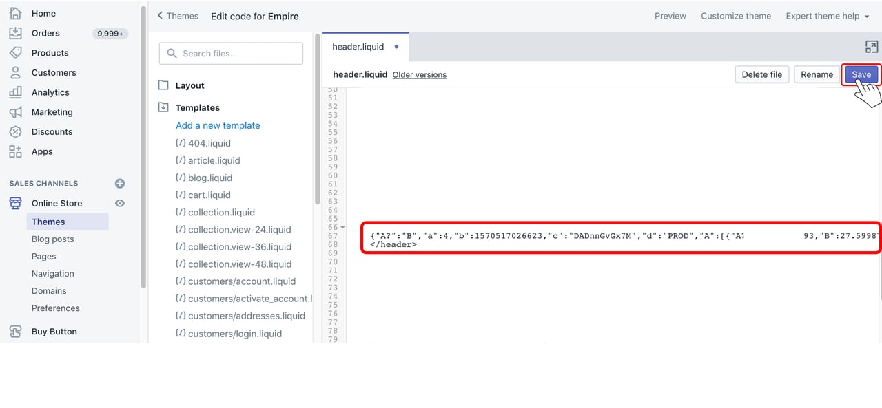 12. Paste the copied code just before the closing </header> tag. This placement ensures the popup loads properly across your site.
